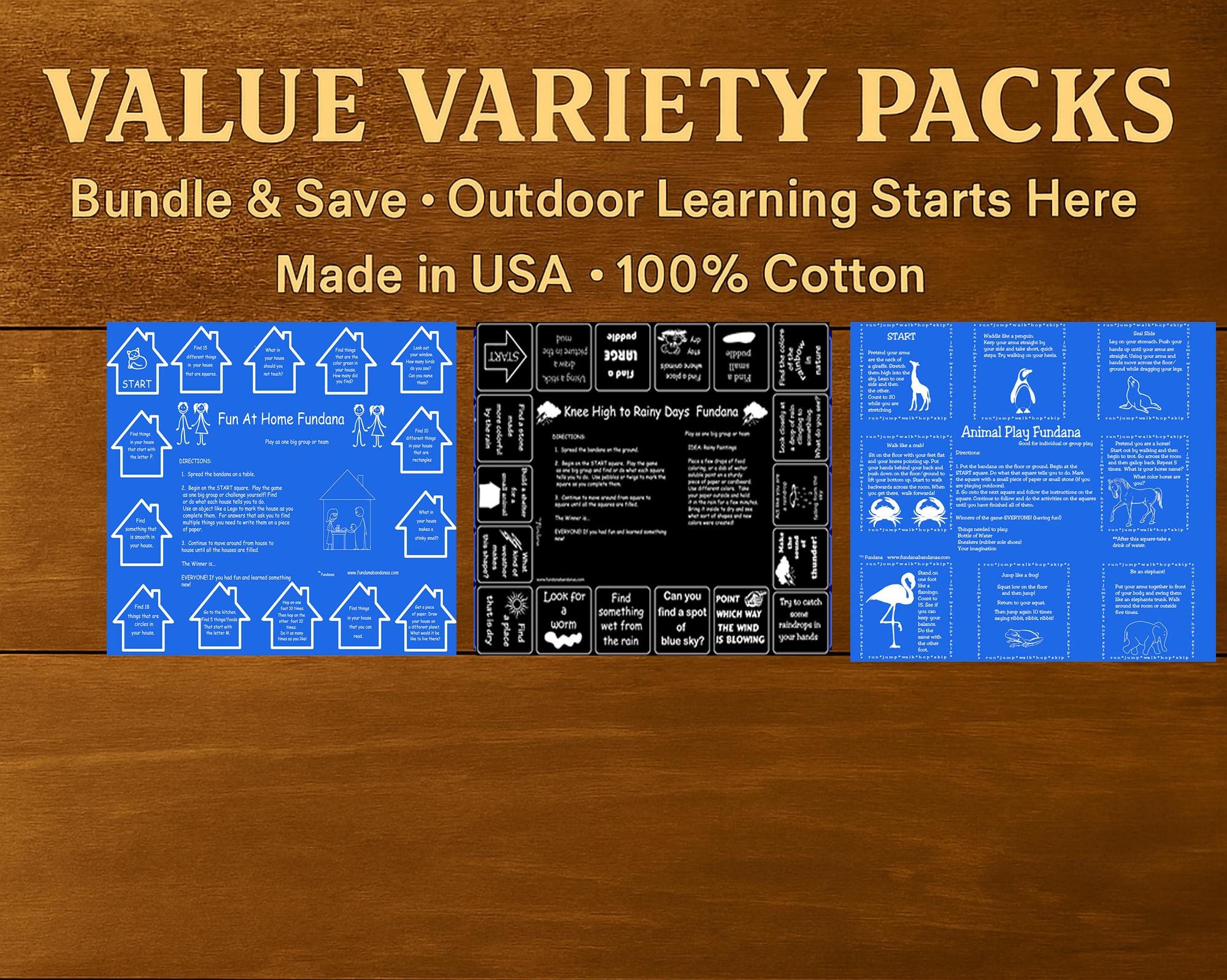 This Value Variety Pack includes 3 screen-free Fundana Bandanas designed to get kids active, engaged, and learning β no matter the weather.