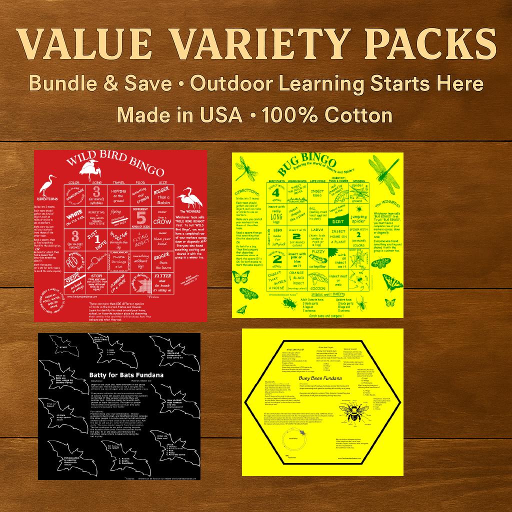 This Pollinator Value Variety Pack includes 4 exciting and educational Fundana Bandanas that help kids learn about bees, bats, bugs, and birds β all while playing fun, screen-free games.