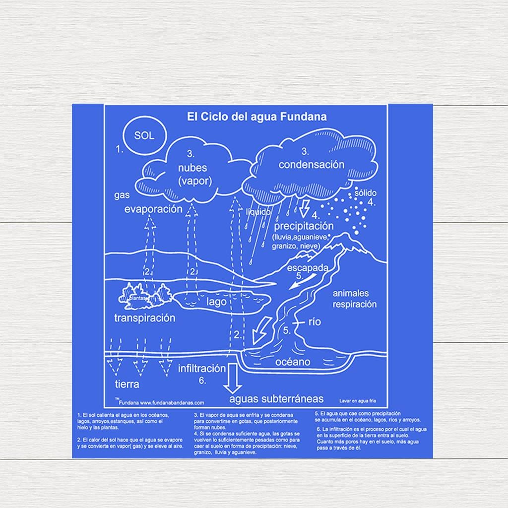 The Spanish Water Cycle Fundana is an easy, engaging way to teach kids about the water cycle at home or in the classroom. With a large, clear graphic and numbered steps that correspond to simple explanations at the bottom, kids can easily follow along and understand each stage of the cycle.
