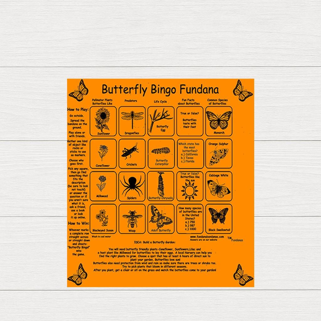 The Butterfly Bingo Fundana Bandana is the perfect way to get kids, scouts, camps, home schoolers to get excited about learning about nature