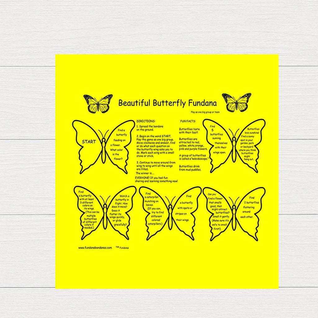 Get ready for a fluttering good time with the Beautiful Butterfly Fundana β a hands-on scavenger hunt bandana designed to help kids ages 7β9 learn all about the amazing world of butterflies!