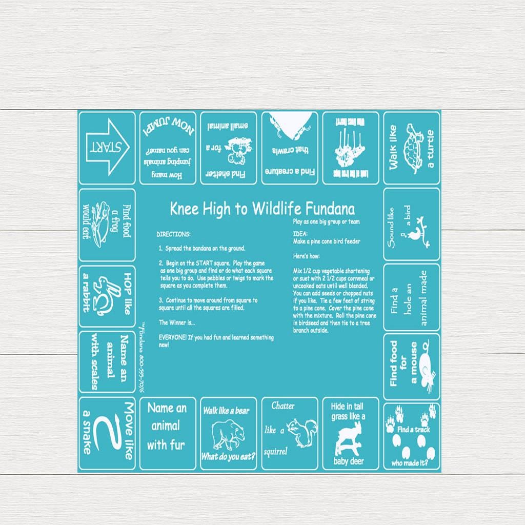 The Knee High to Wildlife Fundanas are printed on soft, made in USA, 100% cotton bandanas.
