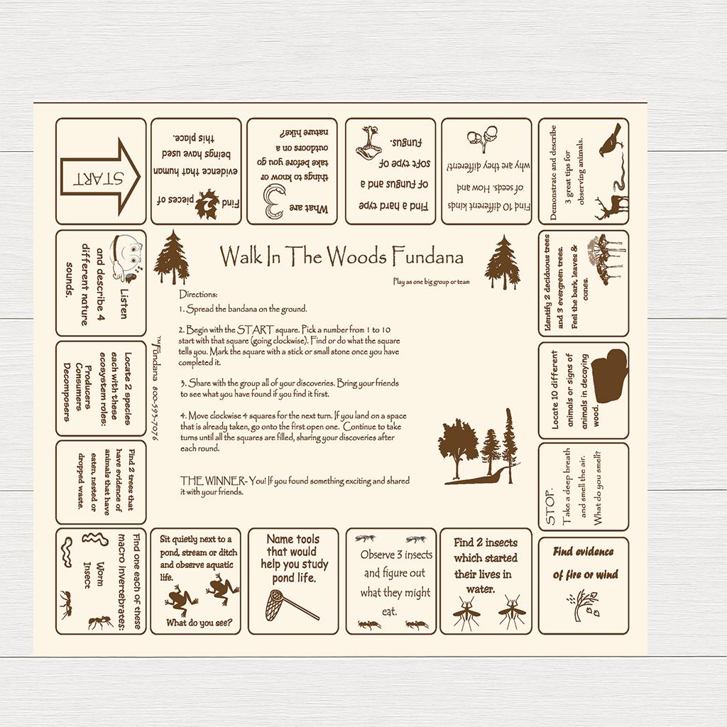 This interactive, screen-printed bandana doubles as a hands-on scavenger huntโencouraging deeper thinking and nature connection during hikes, forest walks, or park outings.