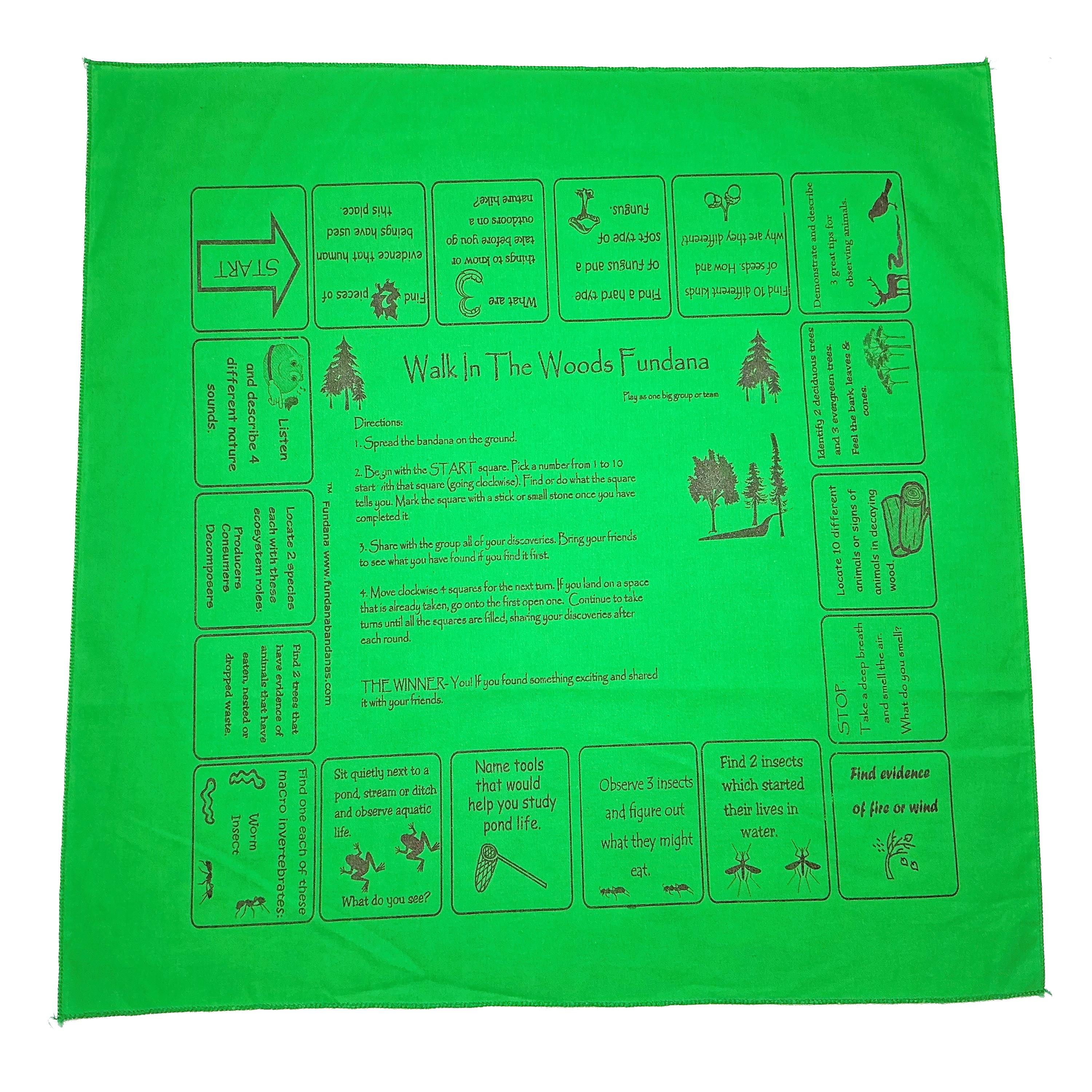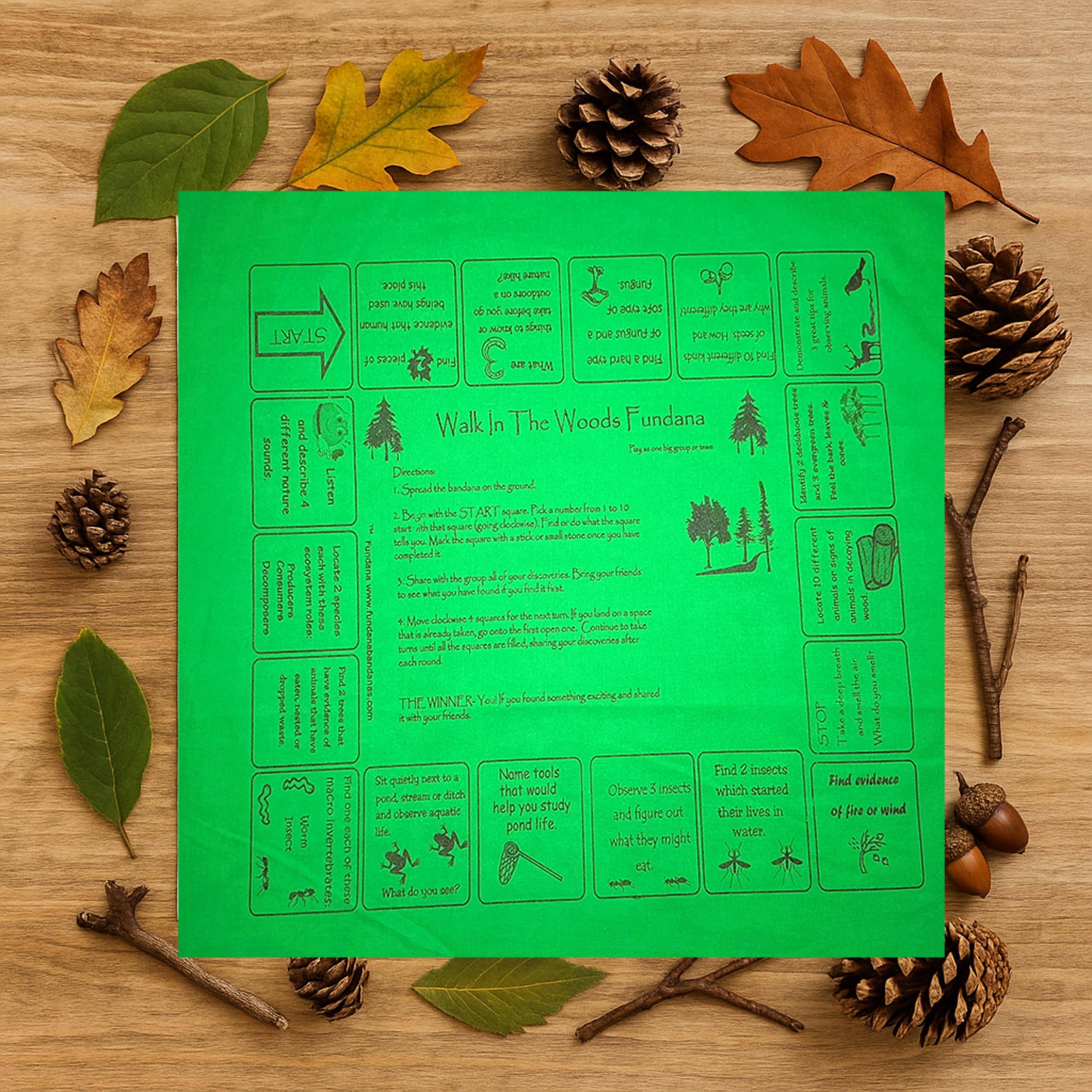 This interactive, screen-printed bandana doubles as a hands-on scavenger hunt—encouraging deeper thinking and nature connection during hikes, forest walks, or park outings.