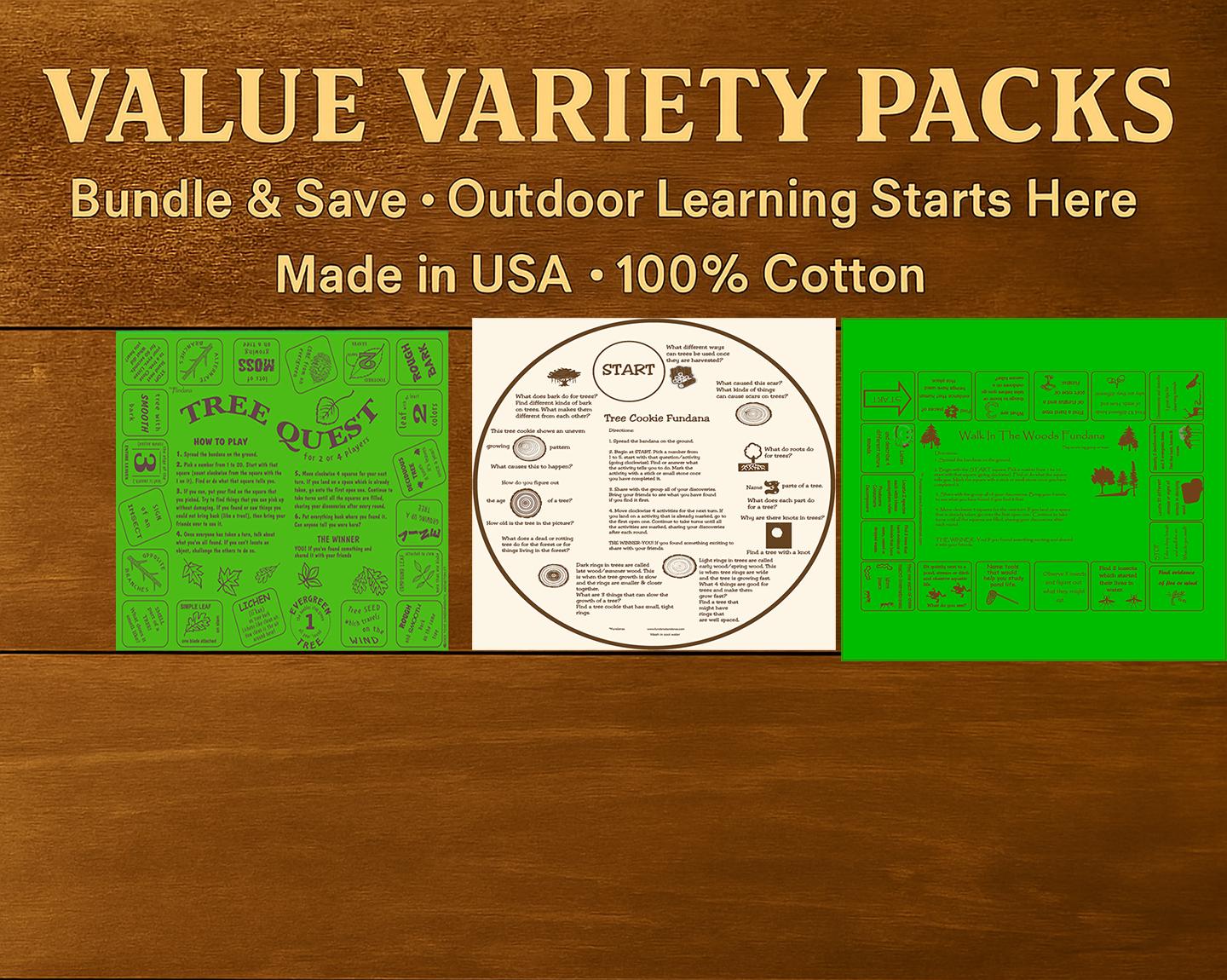 Our Tree Quest, Tree Cookies and Walk in the Woods make up this value variety pack of Fundanas. An easy, fun way to introduce kids to Trees, Tree Cookies and the habitat that is part of a Walk in the Woods.